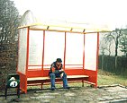 ściany wypełnione w górnej części poliwęglanem komorowym dymnym w dolnej blachą ocynkowaną, drewniana ławka TYP "W-C"